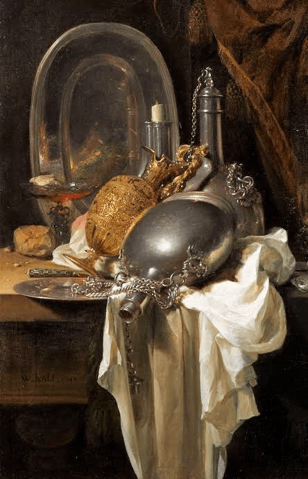 An important branch of the Vanitas style painting grew when wealth further increased and households became bountiful with objects like venetian glass and oriental rugs thus showcasing such opulence in the paintings.